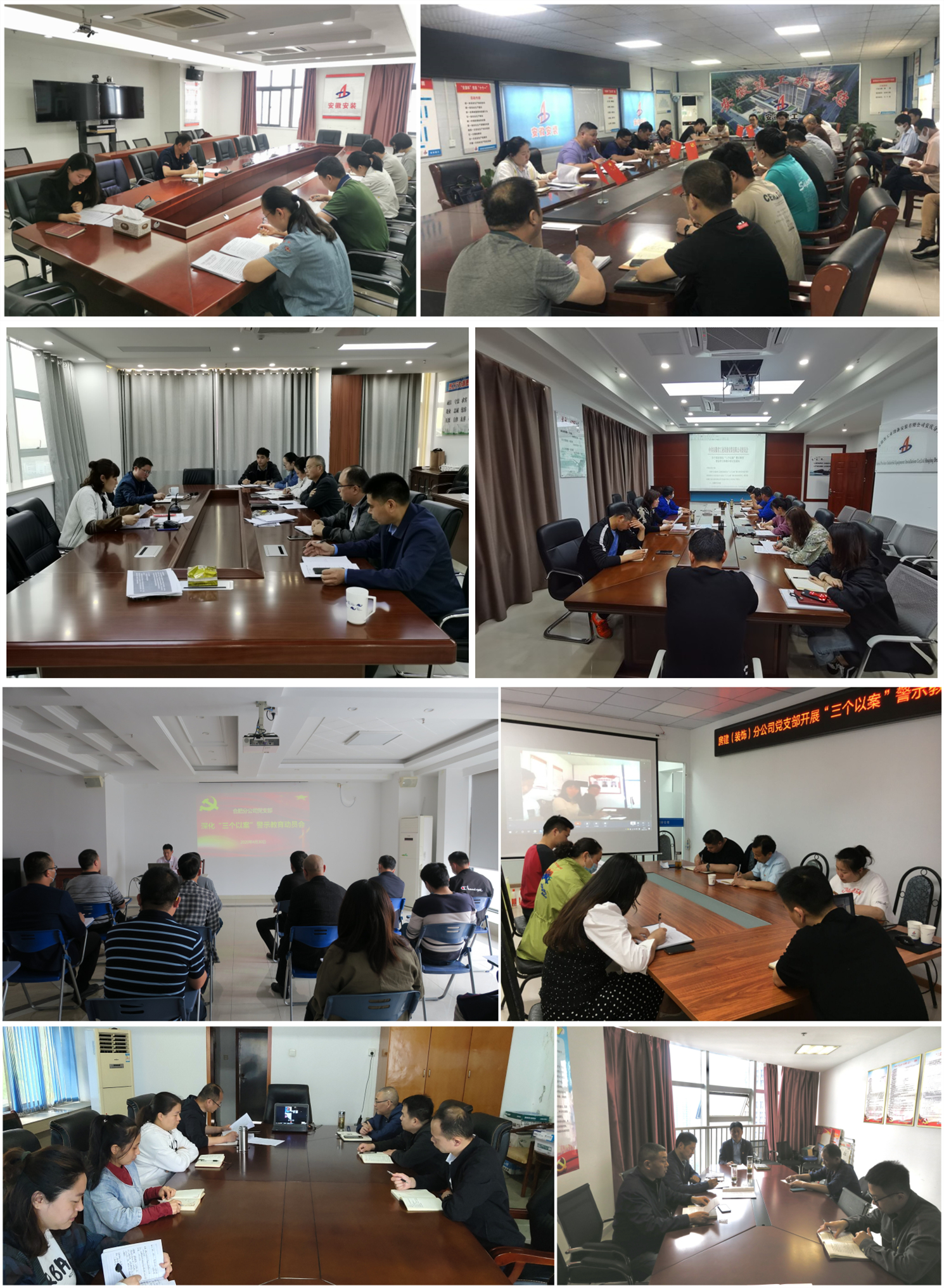 各黨支部陸續召開深化"三個以案"警示教育動員會,傳達學習安徽安裝黨風廉政建設和反腐敗工作會議暨深化“三個以案”警示教育動員部署會議精神,深入解讀《安徽建工控股黨委深化“三個以案”警示教育實施方案》、習近平在十九屆中央紀委四次全會上的重要講話精神,并通報省屬企業典型案例。通過對典型案例的深入剖析,號召與會人員引以為戒,真正受到警示警,深刻認識開展深化“三個以案”警示教育的重大意義,從嚴從實開展各項工作,促進形成真抓實干、攻堅克難、奮勇爭先的干事創業濃厚氛圍。積極開展深化"三個以案"警示教育理論學習及研討,圍繞“四聯四增”“十查十做”,堅決抓深抓實學習教育,確保廣大黨員領導干部受警醒、明法紀。