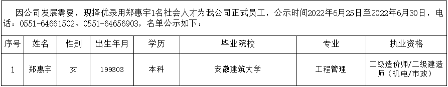 2022年擬錄用社會人才公示